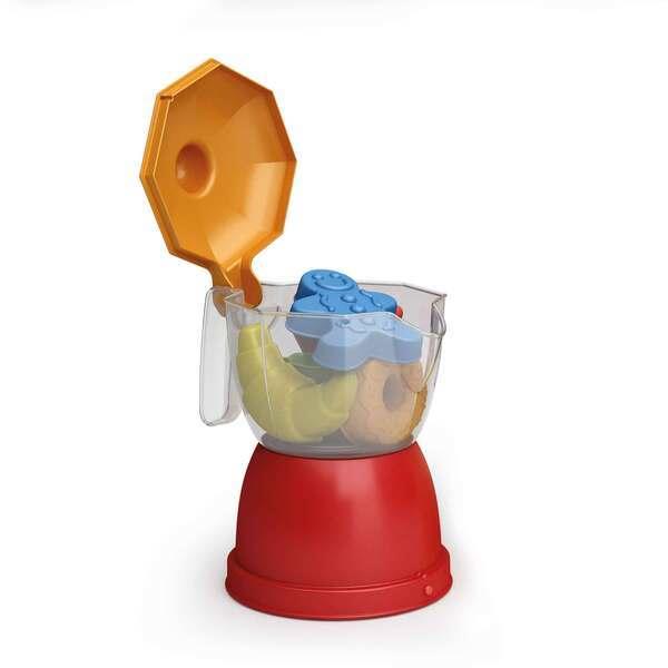 Kotyogós kávéfőző mintájára készült homokozószett. A kávéfőzőalja vödörként, szűrője szitaként, teteje pedig locsolókannaként használható. További tartozékok: 4 db homokozó forma, 2 db csésze alátéttel és kiskanállal, 1 db homokozókanál.