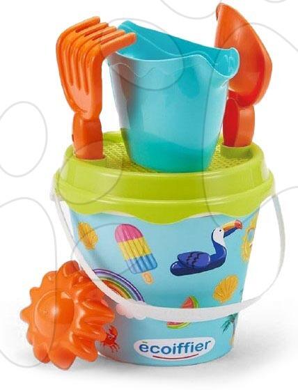 Vödör szett fagylalt Garden&Seasons a francia Écoiffier vállalat műhelyéből egy csodálatos játékszett gyerekeknek már 18 hónapos kortól. A szettben található egy nagy vödör, melyet tartós IML nyomat díszít, szita, lapát, gereblye, napocska alakú homokozóforma és kék locsolókanna. Stílusos dizájn és nyári motívum elvarázsolja a gyerekeket. A játékszett nem csup