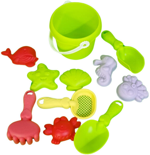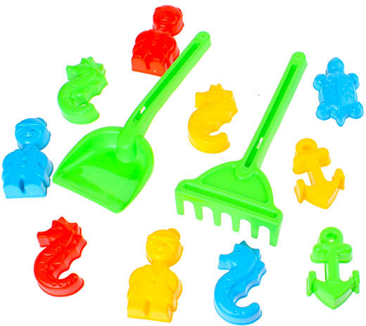 A tengeri állatos homokozó készlet tartalmaz egy lapátot és egy gereblyét valamint többféle, összesen 10 db homok formát is, így könnyen formázhatnak a gyerekek akár tengeri csikót, kalózt, teknőst, vagy horgonyt. Már csak egy kis homokra, vagy homokozóra van szükség és indulhat is a móka. A játékkészletben megtalálható homokozó játékok színei eltérhetnek a képen