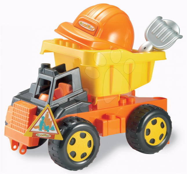 Écoiffier munkás autó sisakkal és homokozó szett nagyon szép narancssárga - sárga készlet kicsiknek. Homokozó szett tartalmaz narancssárga sisakot és ezüstös gereblyét lapáttal. Az autó minőségi műanyagból készült, alkalmas homokozóba. A gyerkőc könnyedén össze és szétszerelheti a kisautót. A szerszámok segítségével a kicsik gyönyörű alkotásokat fognak a homo
