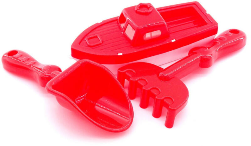 Mini homokozó szett hajóval - piros Mini homokozó szett hajóval - piros . A strandon vagy a játszótéri homokozóban is játszhatnak a gyerekek ezzel a három darabos homokozó készlet tel. A kishajó mellett egy lapát és egy gereblye is van a szettben, amikkel gyakorolhatják a szerszámhasználatot a kicsik. A játék során fejlődik motorikus készségük, szem-kéz koordinációjuk