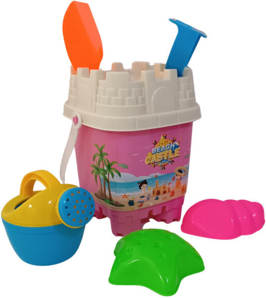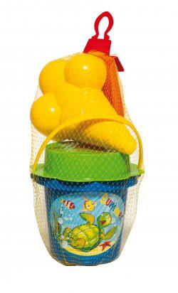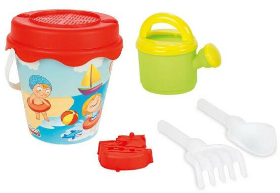Vidám, színes homokozó felszerelésed lehet ez a szett. Mindent megtalálsz benne, amire szükséged van egy jó kis homokozáshoz. Nagy vödör, lapát, gereblye és homokozóform és locsolókanna is tartozik hozzá. Csomagolás mérete: 18 x 19 x 32 cm 2 éves kortól ajánljuk.