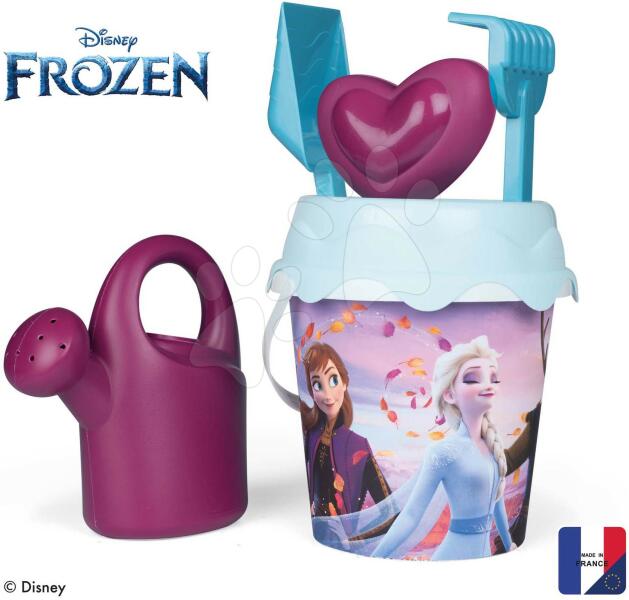 Vödör szett locsolókannával Frozen Garnished Bucket a francia Smoby vállalat műhelyéből egy nagyszerű játék készlet homokozóba, mely főleg a kislányok figyelmét kelti fel már 18 hónapos kortól. Kék vödrön a népszerű Jégvarázs mese szereplői, Anna és Elza hercegnők láthatóak, akiket gyerekek világszerte ismernek és nagyon szeretnek. Egész mesés szett vödörből,