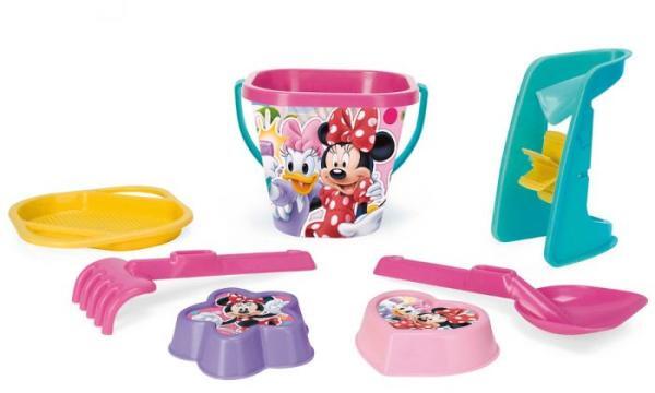 Wader Minnie egér homokkészlet 77442 . Licenc téma 7 darab kiegészítővel: vödör, szűrő, kanál, gereblye, 2 x penész, malom Gyerekeknek 1 éves kortól