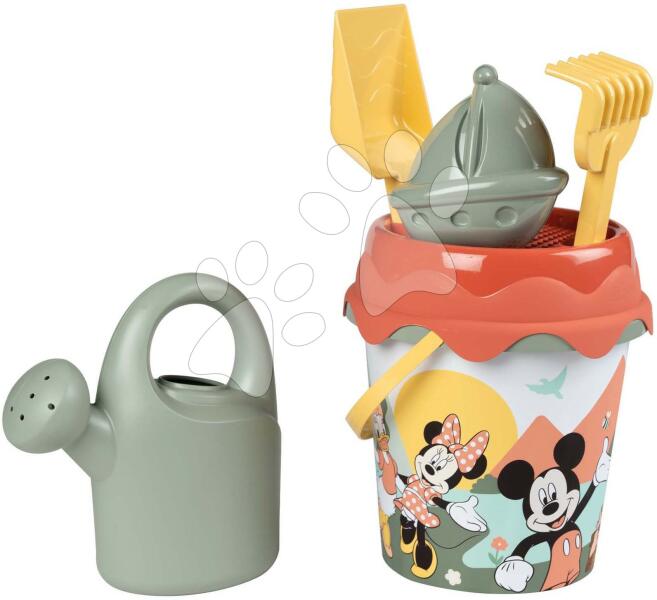 Ökobarát vödör szett locsolókannával Mickey Green a francia Smoby vállalat műhelyéből egy nagyszerű játék készlet homokozóba fiúknak és lányoknak már 18 hónapos kortól. Tarka vödrön 17 cm magas, a vidám Mickey egér motívuma garantáltan lenyűgözi a kicsiket. Egész szett vödörből, lapátból, szitából, gereblyéből, pillangó alakú formából és zöld locsolóka