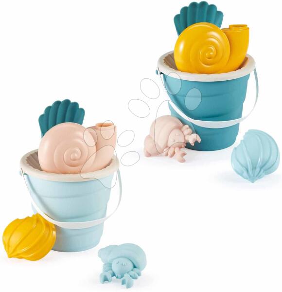 Vödör szett kagylóval és rákkal Beach Écoiffier egy igazán bájos ajándék fiúknak és lányoknak már 18 hó kortól, mely számos boldog pillanatot visz a kicsik mindennapjaiba a homokozóban és a strandon. A 17 cm magas vödör lágy kék színvilágban már az első pillantásra elcsábítja a gyerekeket. A készletben megtalálható kagyló alakú lapát, szita, kagyló és rák hom