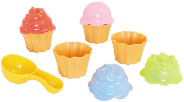 Minden gyerkőc imád homokból finomságokat formázni, ezzel a szettel pedig könnyedén készíthetnek ízletes homok muffinokat! A kanál segítségével belelapátolhatják a formákba a homokot, és kész is a süti. A szett egy kanalat és 4 db két részből álló muffin formát tartalmaz, különböző felső résszel.