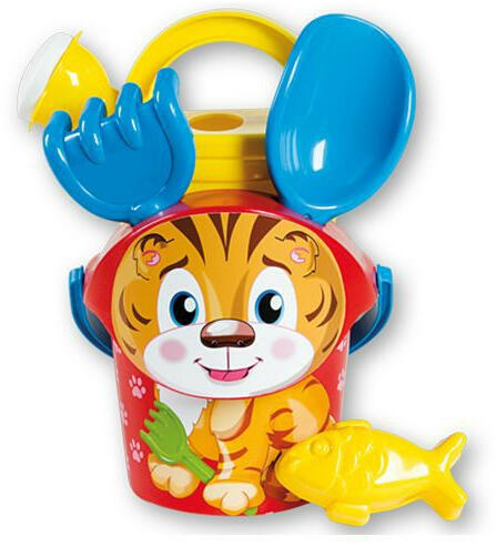 A piros színű homokozóvödrön egy tündérien aranyos tigriskölyökkel találkozhatsz, aki gereblyével a kezében várja, hogy segíthessen az építkezésben. A szettben rengeteg nélkülözhetetlen szerszámot találhatsz ahhoz, hogy egy tökéletes homokvárat építhess fel. A 6 részes szettben egy nagy méretű vödröt és egy hozzá tartozó szitát is találhatsz, melyekkel az első