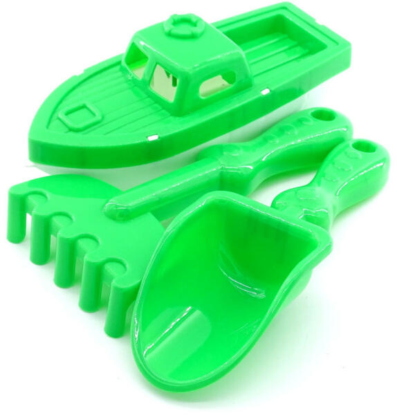 Mini homokozó szett hajóval - zöld Mini homokozó szett hajóval - zöld . A kisgyermekek egyik kedvenc elfoglaltsága kint a szabadban a homokozás. Ezzel a három darabos homokozó készlet tel a strandon vagy a játszótéri homokozóban is játszhatnak a gyerekek. A kishajó mellett egy lapát és egy gereblye is van a szettben, amikkel gyakorolhatják az eszközhasználatot a kicsik. A já