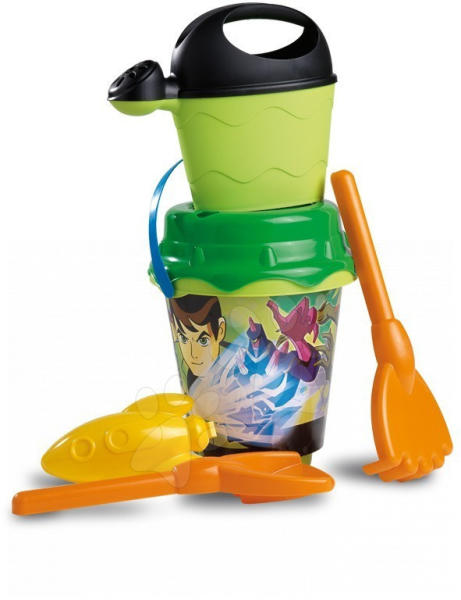 Divertoys gyermek homokozó szett 6 darab szerszámból áll. Szettbe tartozik a gyönyörű, 40 cm magas vödör, mely Ben 10 mese motívummal van díszítve. Ez egy nagyszerű játék vízpartra vagy gyermek játszótérre. Ben 10 egy közkedvelt mesehős , ezért is könnyen elnyeri ez a vödör a kisfiúk szívét. Gyerek homokozó szett továbbá tartalmaz egy zöld szitát, feketés-zöld lo