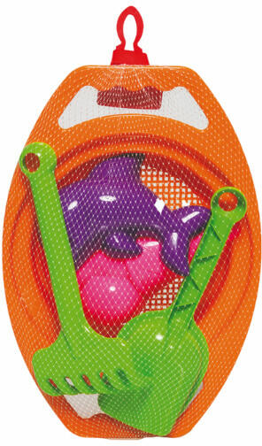 A gyerek játék szett homokozóban használható. A játékoknak köszönhetoen már nem kell gondoskodnia a gyerekek szórakozásáról a strandon, vagy a homokozóban. A szett egy kiskocsit, öntözokannát, virágtartót, kisebb és nagyobb gereblyét, lapátkát, 2 villát és egy ollót tartalmaz. Nem foglalnak sok helyet, könnyen hordozhatók egyik helyrol a másikra.