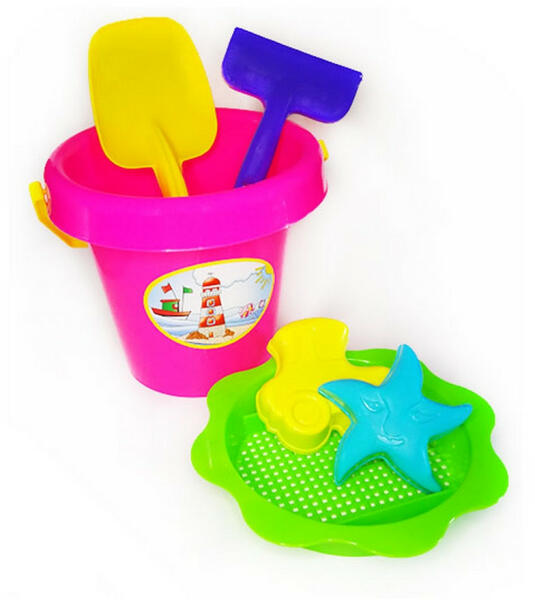 Homokozó készlet gyerekeknek Kiszerelés: 6 db-os Tartalma: 1 db homokozó vödör, 1 db lapát, 1 db gereblye, 2 db homokozó forma, 1db szita Színe: Homokozó vödör színe rózsaszín, kiegészítők színe változó Homokozó vödör mérete: M: 20 cm Átmérő: 20 cm Homokozó Szett 6 db-os rózsaszín vödörrel Ez a 6 db-os nagy homokozó készlet tartalmaz 1db rózsaszín homokozó vö