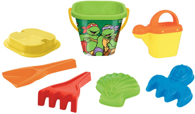 Dobd fel a strandolás adta örömeid egy vagány homokozó készlettel és építsd meg álmaid homokvárát. 1-2 éves kortól ajánljuk mindenkinek, aki Tininindzsa rajongó. A szett 23 cm-es és strapabíró műanyagból készült. Tartalmaz egy homokozó vödröt, lapátot, szitát, gereblyét, locsolót és 2 db vidám formát. Szerezd be időben, hogy már csak a jó idő beköszöntét kel