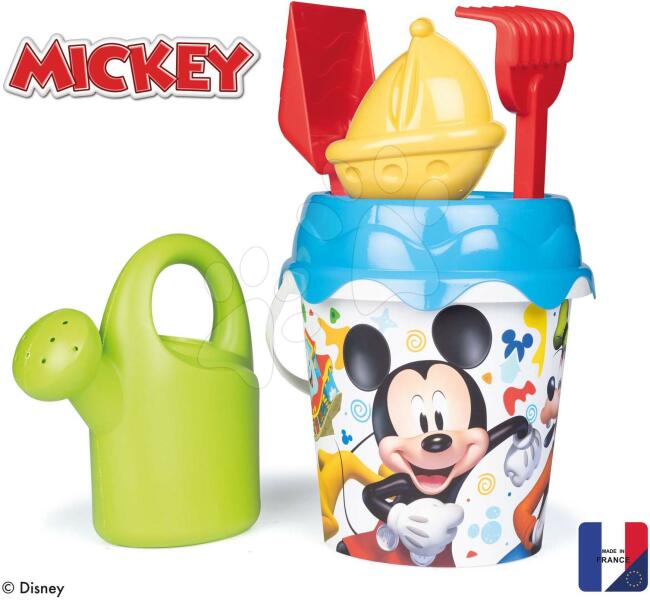 Vödör szett locsolókannával Mickey Garnished Bucket a francia Smoby vállalat műhelyéből egy igazán menő játék készlet homokozóba, mely minden gyerkőc figyelmét azonnal leköti már 18 hónapos kortól. Tarka vödrön a népszerű Mickey mesefigura látható, akit gyerekek világszerte ismernek és nagyon szeretnek. Egész mesés szett vödörből, lapátból, szitából, gereblyéb