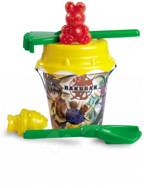 Divertoys szett homokozóba gyönyörű gyermek szett, mely összesen 6 darab szerszámot tartalmaz. Ide tartozik a színes vödör Bakugan motívummal díszítve, továbbá sárga szita, zöld kislapát és gereblye, piros nyuszi homokozó forma és sárga halacska homokozó forma. A szerszámok segítségével a kicsik gyönyörű alkotásokat fognak a homokozóban megvalósítani, ezzel fejlőd