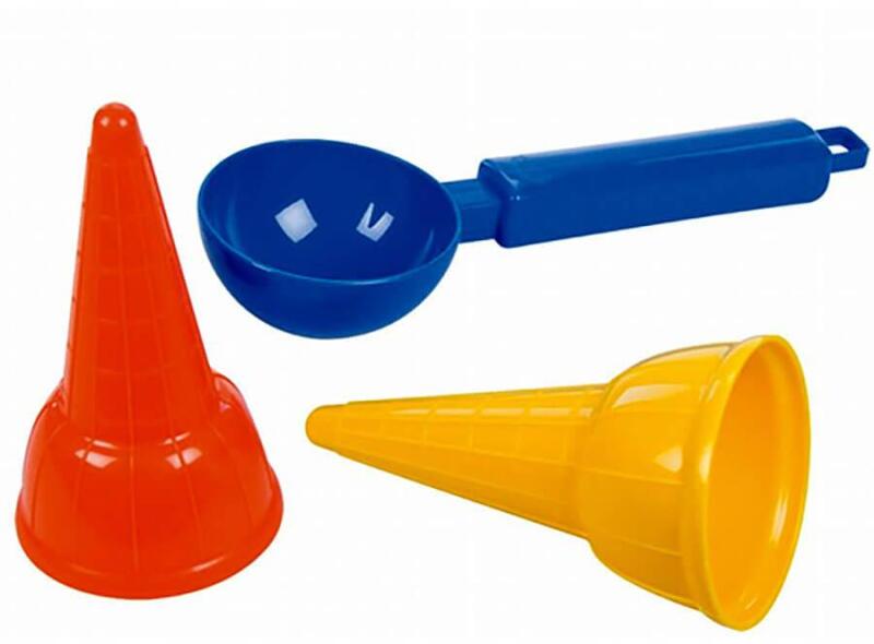 Mit kell tudni a játékról? Fagyis homokozó készlet 3 db-os Ez a 6 részes homokozó szett a gyerkőcök egyik kezdő homokozókészlete is lehet. De bővíteni is lehet a már meglévő szettet is vele, hogy még több fagyit el tudjanak készíteni a kis pajtásainknak. A fagyiskanállal könnyen ki lehet adagolni a gombócokat a tölcsérekbe, mint az igazi cukrászok. Szerepjátékokhoz ki