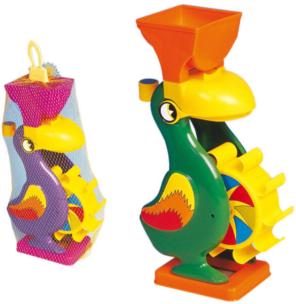 Pelikán formájú homokozó játék, amely nem csak homokkal, de vízzel is használható. Mérete: 30 cm x 16 cm x 11 cm 1,5 éves kortól ajánlott! A terméket véletlenszerű színváltozatban küldjük.