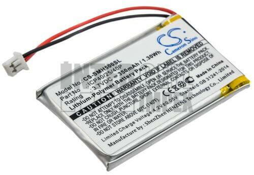 Sena SMH-5 series ICP40/25/40P 3,7V Li-Polymer 350mAh / 1.30Wh Wireless Headset/Fülhallgató akkumulátor utángyártott. Kompatibilis készülékek: SMH-5 Kompatibilis part number : ICP40/25/40P Tulajdonságok : Feszültség: 3,7V Kapacitás: 350mAh / 1.30Wh A csomag tartalma: 1db akkumulátor, zacskós csomagolás