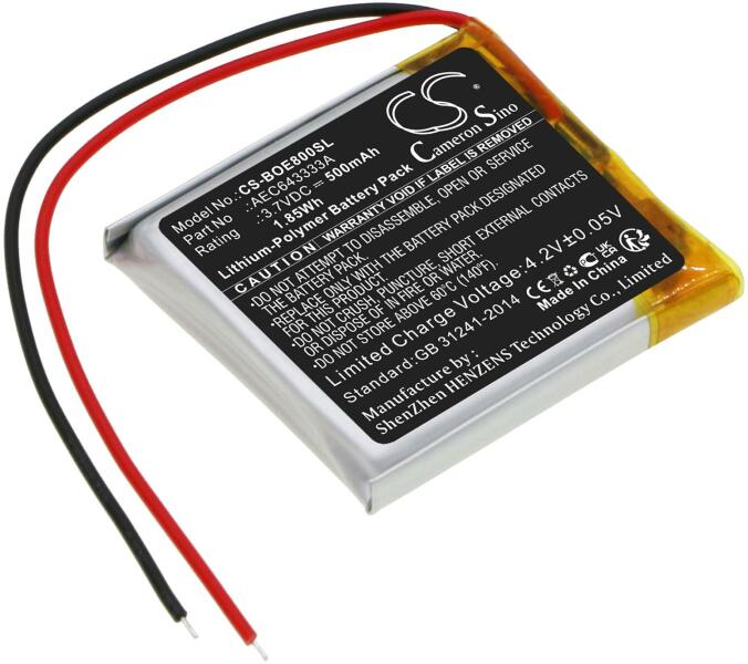 Akkumulátor Cameron Sino CS-BOE800SL Kompatibilitás: Bang & Olufsen Beoplay E8EAN: 4894128181002 Feszültség: 3.70 V Típus: Li-Polymer Kapacitás: 500 mAh Energia: 1.85 Wh Magasság: 33 mm Szélesség: 30 mm Mélység: 6 mm Súly csomagolás nélkül: 11 g Súly csomagolással együtt: 36 g