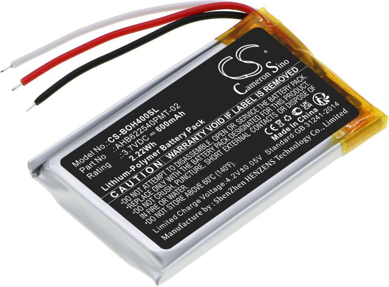 Akkumulátor Cameron Sino CS-BOH400SL Kompatibilitás: Bang & Olufsen Beoplay H4EAN: 4894128182566 Feszültség: 3.70 V Típus: Li-Polymer Kapacitás: 600 mAh Energia: 2.22 Wh Magasság: 42 mm Szélesség: 25 mm Mélység: 6 mm Súly csomagolás nélkül: 12 g Súly csomagolással együtt: 37 g