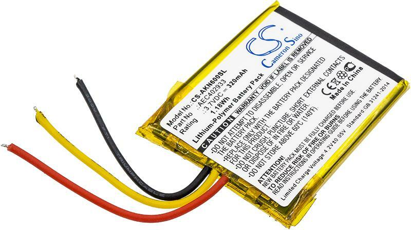 Akkumulátor Cameron Sino CS-AKN600SL Kompatibilitás: Akg N60 NcEAN: 4894128138815 Feszültség: 3.70 V Típus: Li-Polymer Kapacitás: 320 mAh Energia: 1.18 Wh Magasság: 35 mm Szélesség: 29 mm Mélység: 4 mm Súly csomagolás nélkül: 7 g Súly csomagolással együtt: 32 g