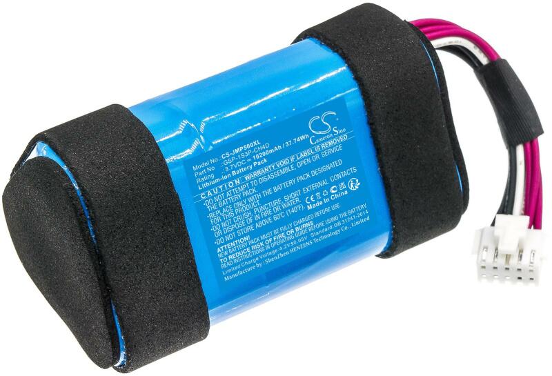 Akkumulátor Cameron Sino CS-JMP500XL Kompatibilitás: Jbl Pulse 5EAN: 4894128182450 Feszültség: 3.70 V Típus: Li-Ion Kapacitás: 10200 mAh Energia: 37.74 Wh Magasság: 70 mm Szélesség: 40 mm Mélység: 36 mm Súly csomagolás nélkül: 155 g Súly csomagolással együtt: 225 g
