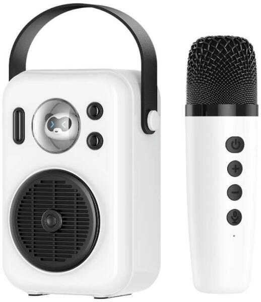 Wireless Bluetooth Speaker Soundpeats Hi-sing (white) Love to sing? Do you occasionally host karaoke parties? The Soundpeats Hi-sing speaker is perfect for you! With its lightweight, portable design, you can take it with you almost anywhere, and the built-in battery provides up to 5 hours of playtime. The set also includes a wireless microphone that offers several special sound effects to choose f