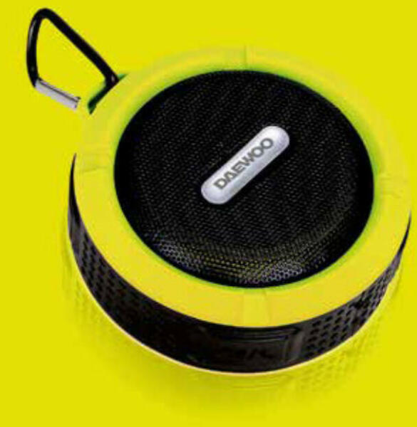 DAEWOO Bluetooth Mini Hangszóró - sárga Tulajdonságok Kompakt méret Akasztó karabínerrel Bluetooth 5.0 Hangszóró átmérője: 45mm RMS 3W Frekvenciaátvitel: 200 Hz-20 kHz Bemeneti áram: 5V DC Feltöltési idő: kb 2,5 óra Lejátszási idő: kb 1.5 óra 300 mAh akkumulátor Citromsárga színben