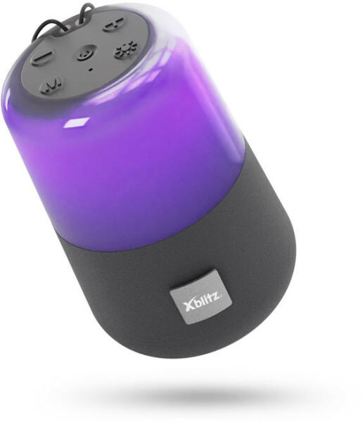 XBLITZ MASTER GO Vezeték nélküli Bluetooth hangszóró kicsi de őrült Kicsi, de őrült. Ez a kis hangszóró a buli királya, köszönhetően a beépített LED lámpáknak, amelyek pulzálóan váltják a színeket. Érezd a zenei atmoszférát, amely megteremti az Xblitz Master Go hangját és fényét . Úgy tervezték, hogy ne csak a fülét, hanem a szemét is kedvelje. Egyedi kialakít