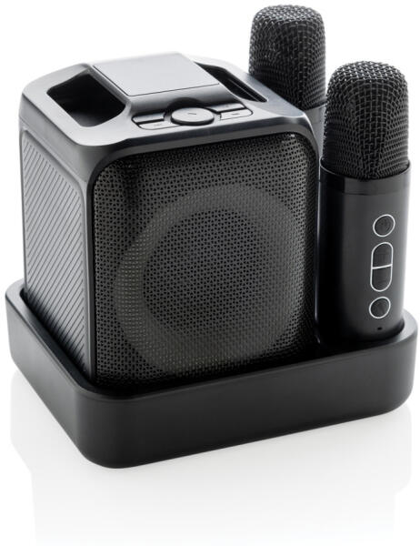 Két mikrofonnal ellátott minőségi karaoke szett, ami lehetővé teszi, hogy sztereóban énekeljen legjobb barátaival. A hangszóróhoz és a mikrofonhoz egy indukciós töltőtalp tartozik, így mindhármat könnyedén töltheti egyszerre. Egyszerűen indítson el egy dalszöveges zenei videót, vagy kapcsolja be a dalszöveget a kedvenc zenelejátszójában és készüljön fel a több ór