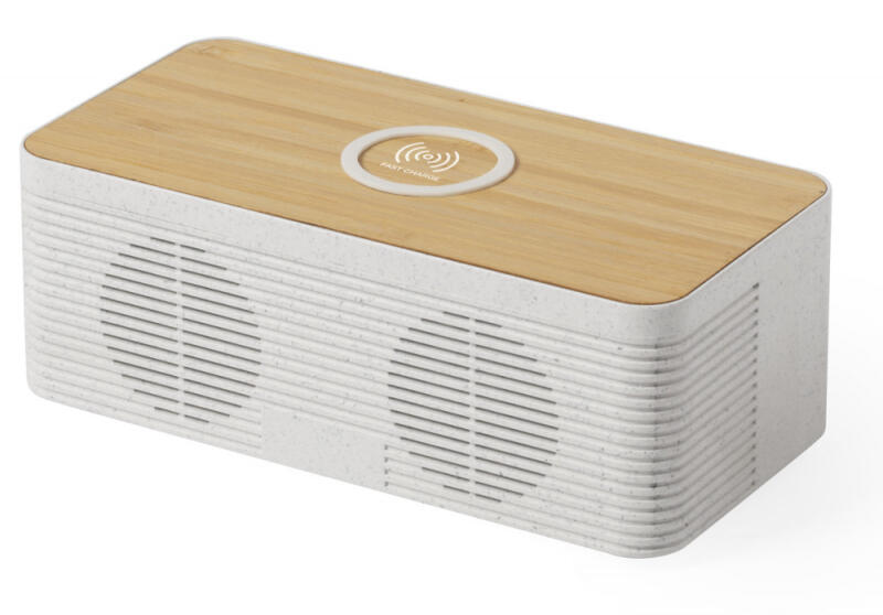 Töltse telefonját vezeték nélkül miközben kedvenceit hallgatja ezzel a búzaszárból (35% búzaszár, ABS anyag) valamint parafából készült hangszóróval. 150 cm-es C típusú USB kábellel a kábellel való töltéshez. 5W-os vezeték nélküli hangszóró valamint tetején 5W-os vezeték nélküli töltő C típusú illetve AUX csatlakozóval. A hangszóró 1200 mAh akkumulátorral r