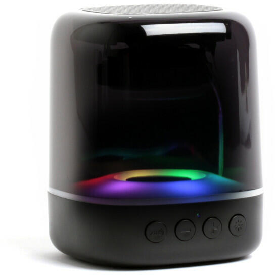 5W-os vezeték nélküli hangszóró RCS (Recycled Claim Standard) újrahasznosított ABS-ből és TPE-ből. Teljes újrahasznosított anyag tartalom: 38% a termék összsúlya alapján. Az RCS-tanúsítvány biztosítja az újrahasznosított anyagok ellátási láncát. A hangszóró alján beépített világítás található. 300 mAh akkumulátorral ami akár 5 órányi lejátszási időt valam