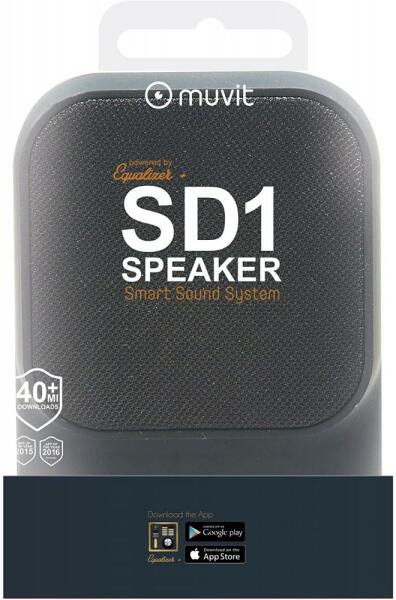 Muvit SD1 Bluetooth hangszóró. A termék új. JELLEMZŐK: - Könnyű és hordozható, kábelek nélkül. - Bluetooth: 4.1 - Működési távolság: 10m - 3Ohm - 3W - 76dB - Feszültség: 3.3-4.2V - Akkumulátor: 600mAh 3.7 v - Az akkumulátor töltőárama: 500mA - Bemenet: 5V - Méretek: 185 x 113 x 54 mm - Súly: 241 g