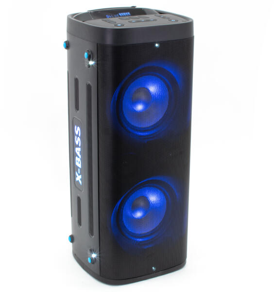 Thunder XBASS-28 350W hordozható party hangfal (USB/SD/BT/FM) + LED fény Hivatalos magyarországi forgalmazótól. Leírás: Emelje a bulit a következő szintre a Thunder XBASS vezeték nélküli partihangszóróival, amely minden irányból látványos fényshow-val rendelkezik. A beépített újratölthető akkumulátornak, mikrofonnak és számos bemeneti lehetőségnek köszönhetően; BT,