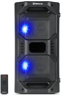 A REAL-EL X-757 multimédiás hordozható hangszórórendszer modern dizájnnal, RGB háttérvilágítással és kiváló minőségű hangzással rendelkezik. A "boombox" széles körű funkcionalitása lehetővé teszi a zenehallgatást mobileszköz, PC, TV, laptop stb. csatlakoztatásával, mind az AUX-kimeneten, mind a Bluetooth-on keresztül. Az USB- és Micro SD-kártyacsatlakozók lehetővé