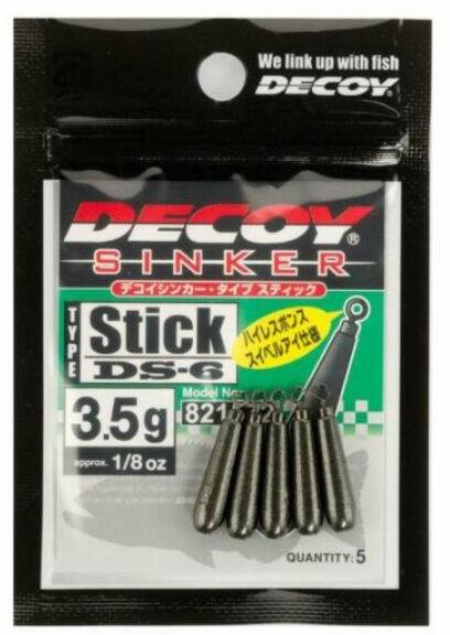 A Decoy DS-6 Sinker Type Stick drop shot ólmok környezetbarát anyagból készülnek, amely nem szennyezi a környezetet. A különleges kialakítás nagyon jó aerodinamikát biztosít, és javítja a teljesítményt mind dobás, mind behúzás közben, megnöveli a szerelékek hatékonyságát.