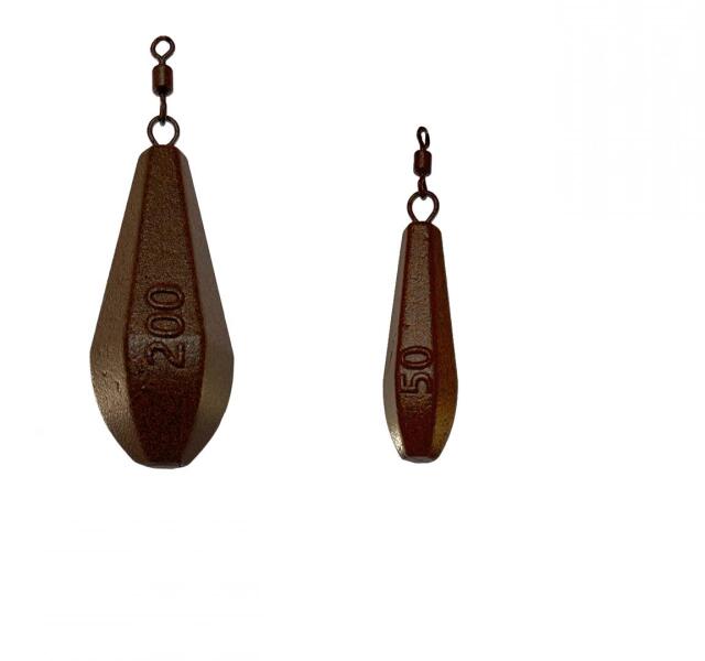 Minőségi kivitelű ólom nehezék. A nehezék porszórt felületkezelése mgakadályozza a visszaverődéseket és a nem kívánt anyagok vízbe történő kioldódását. Forgóval rendelkezik fix vagy csúszó végszerelékek készítéséhez.