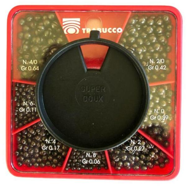 Sörétólom készlet praktikus csomagolásban. Tartalma: n 8 - 0,06 g n 6 - 0,11 g n 4 - 0,17 g n 2 - 0,27 g n 0 - 0,39 g n 2/0 - 0,42 g n 4/0 - 0,64 g