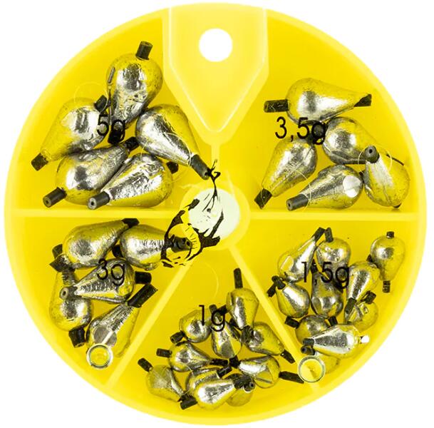 Oliva formájú ólom, amelyet főleg az úszók kisúlyozására, vagy a ragadozóhalas szerelékekhez használnak. A pergető horgászatban is helytál a csali elé helyezve. (Texas, Carolina Rig módszer) Az összes ólomszettre a LEADS sorozatból érvényes a kiváló minőség és a nagy súlyválaszték. A csomagban 5 darab található.
