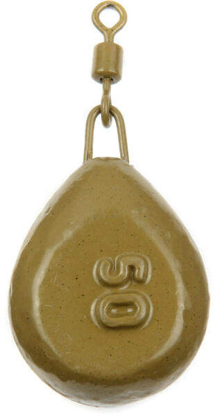 Lapított körteformájú, bevonatos végólom. Ez az egyik legjobb formájú ólomtípus. Lapos, de áramvonalas kialakítása miatt elfekszik a mederfenéken és dobáskor is ideális. Iszapszínű bevonata csillogásmentes, ugyanakkor szivárgásmentes így mérgező anyag nem oldódik ki belőle a vízben. Méret: 50 g Szín: Iszap