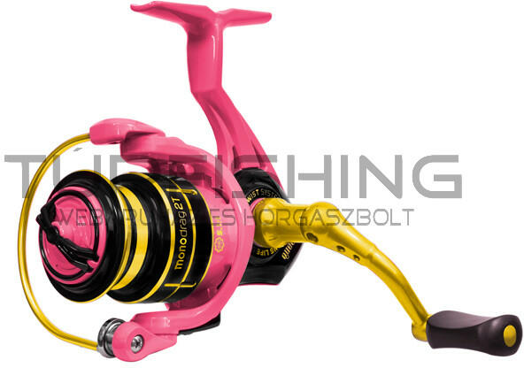 Orsó melyet a Delphin márka QUEEN szériájának rajongói régen vártak. Ami jellemző erre a szériára mely elsősorban hölgyeknek készült a QUEEN MonoDrag orsó rózsaszín színű. Ez esztétikusan van kiegészítve arany és fekete kiegészítőkkel. Az orsó futása nagyon sima és finom, ami köszönhető a szerkezetének és az ideális áttételének 5.1:1, valamint a 5+1 golyós c