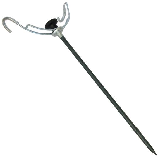 Bottartó villa a horgászbotok megfelelő vízparti elhelyezéséhez. A leszúró vége hegyet kapott a könnyebb letűzés elősegítéséhez.