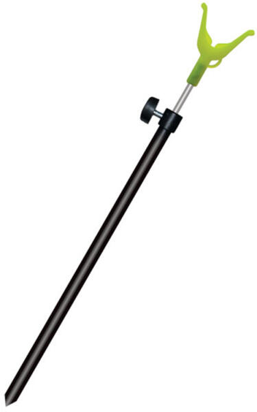 Teleszkópos bottartó villa a horgászbotok megfelelő vízparti elhelyezéséhez. A leszúró vége hegyet kapott a könnyebb letűzés elősegítéséhez.