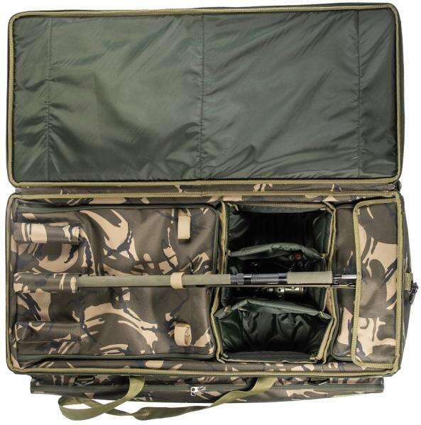 Átfogó táska horgászbotok orsókkal való szálításához. Ebben a táskában mindennek helye van a rövid, cserkeléses horgászathoz, gondosan megtervezett elrendezésnek köszönhetően, elektromos kapásjelzők, bottartó, leszúró, aprócikk tároló, csalitartót és minden ami kell a rövid horgászathoz konnyen szállíthatunk. A táska két rekeszt tartalmaz az orsóval ellátott Fr