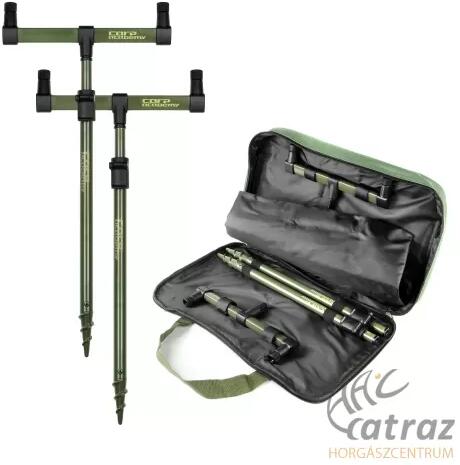 Exkluzív megjelenésű, prémium feketére porfestett alumínium rod pod, mely a környezeti viszonyokhoz igazodva kétféleképpen: a központban vagy a keresztmerevítő végein elhelyezett lábállással is használható. Három kompletten felszerelt bojlis bot tárolására alkalmas, a buzz-bar magassága állítható. A teleszkópos lábaknak köszönhetően magassága szabályozható. Az el