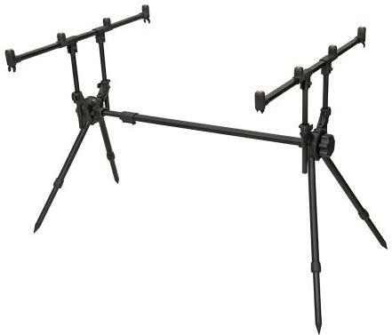 Klasszikus megjelenésű, ugyanakkor prémium minőségű, feketére porfestett alumínium rod pod. A keresztmerevítő végein található nagyméretű csavaroknak és a teleszkópos részeknél található, gyorsan oldható kialakításnak köszönhetően egy szempillantás alatt bevetésre késsz. Négy kompletten felszerelt bojlis bot tárolására alkalmas. A teleszkópos lábaknak köszönhe