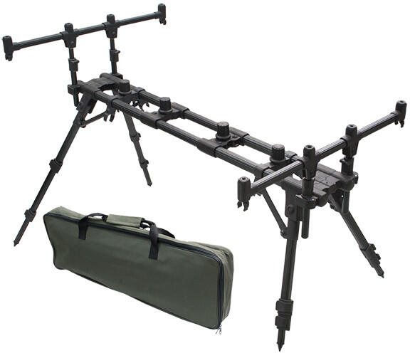 Carp Expert Neo Giant Rod pod 4 bot tárolására hivatott, de 1, 2 vagy 3 bothoz is tökéletes. Többféle felállítása is lehetséges, például a botok spiccei állhatnak a víz felé, vagy az ég felé is, ha akadós a pálya előttünk. Lábai is teleszkóposan állíthatóak, mint a kereszttartó alatti tartók is. Meglehetősen könnyen kezelhető szerkezet, pillanatok alatt felállítha