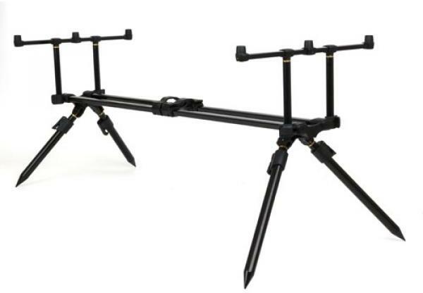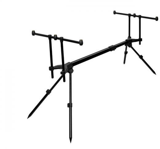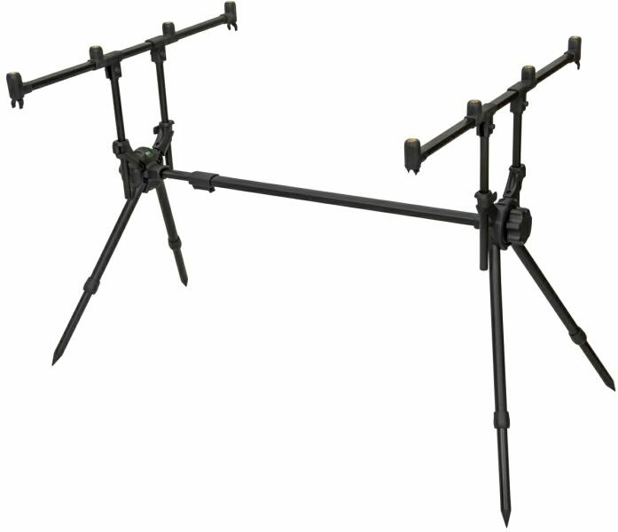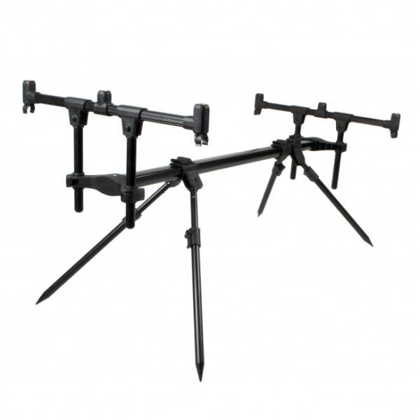 Klasszikus megjelenésű, ugyanakkor prémium minőségű, feketére porfestett alumínium rod pod. A keresztmerevítő végein található nagyméretű csavaroknak és a teleszkópos részeknél található, gyorsan oldható kialakításnak köszönhetően egy szempillantás alatt bevetésre késsz. Négy kompletten felszerelt bojlis bot tárolására alkalmas. A teleszkópos lábaknak köszönhe
