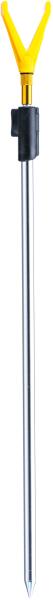 Teleszkópos bottartó villa a horgászbotok megfelelő vízparti elhelyezéséhez. A leszúró vége hegyet kapott a könnyebb letűzés elősegítéséhez.