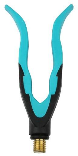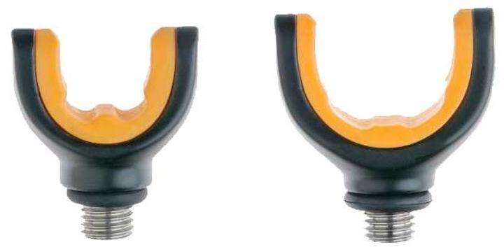 Precíz kidolgozású és ultrakönnyű alumínium bottartó villák, stílusos narancssárga és fekete színben. A villán lévő lágy gumiréteg tökéletes tartást biztosít a legtöbb horgászbot számára. Méret:L és S